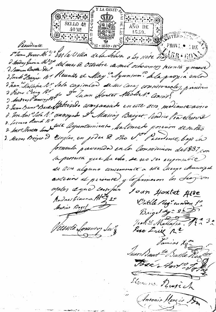 ayuntamiento correspondientes al año 1839″”. Els fulls