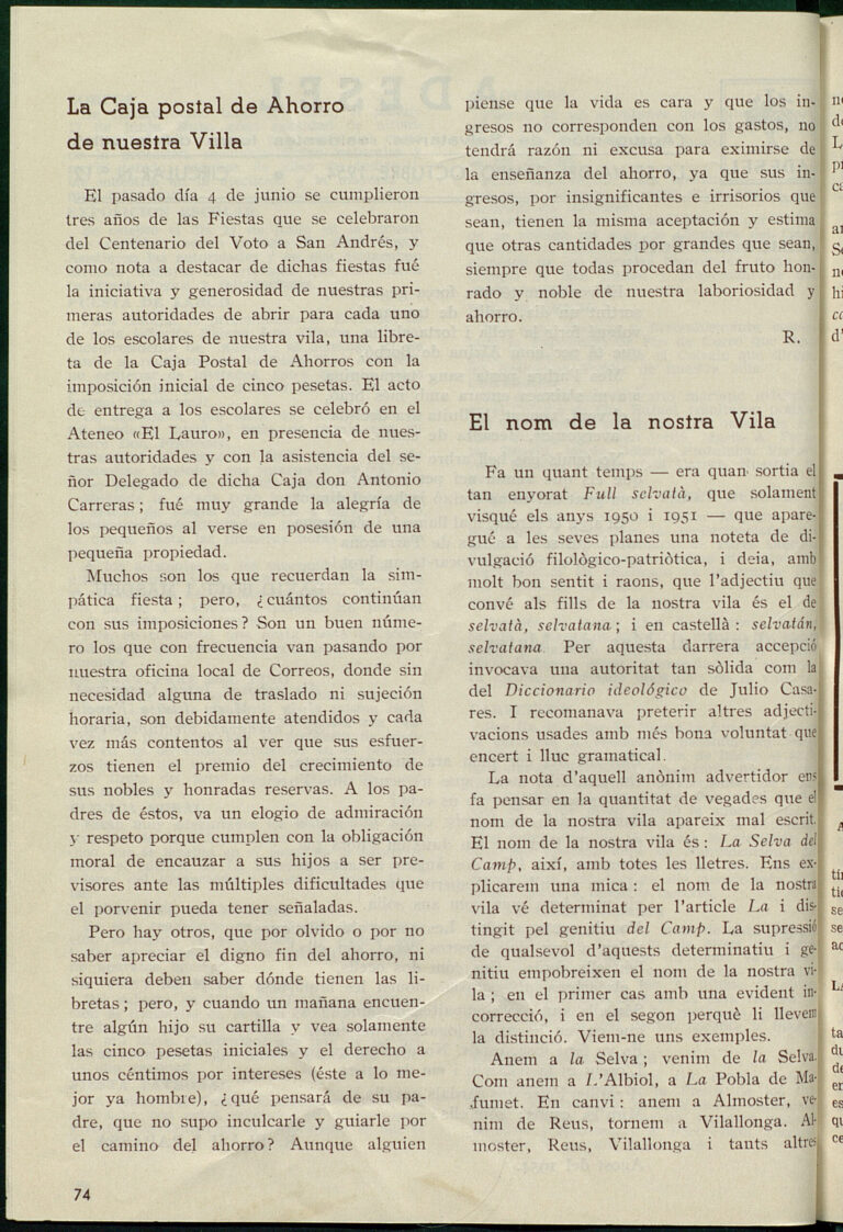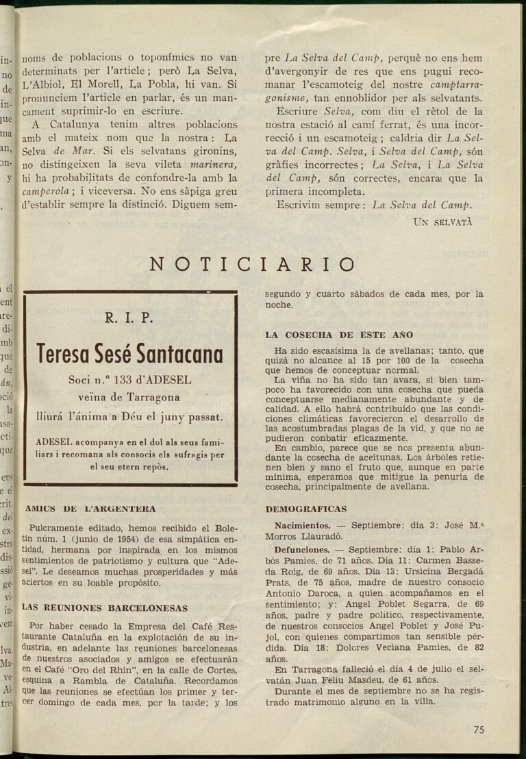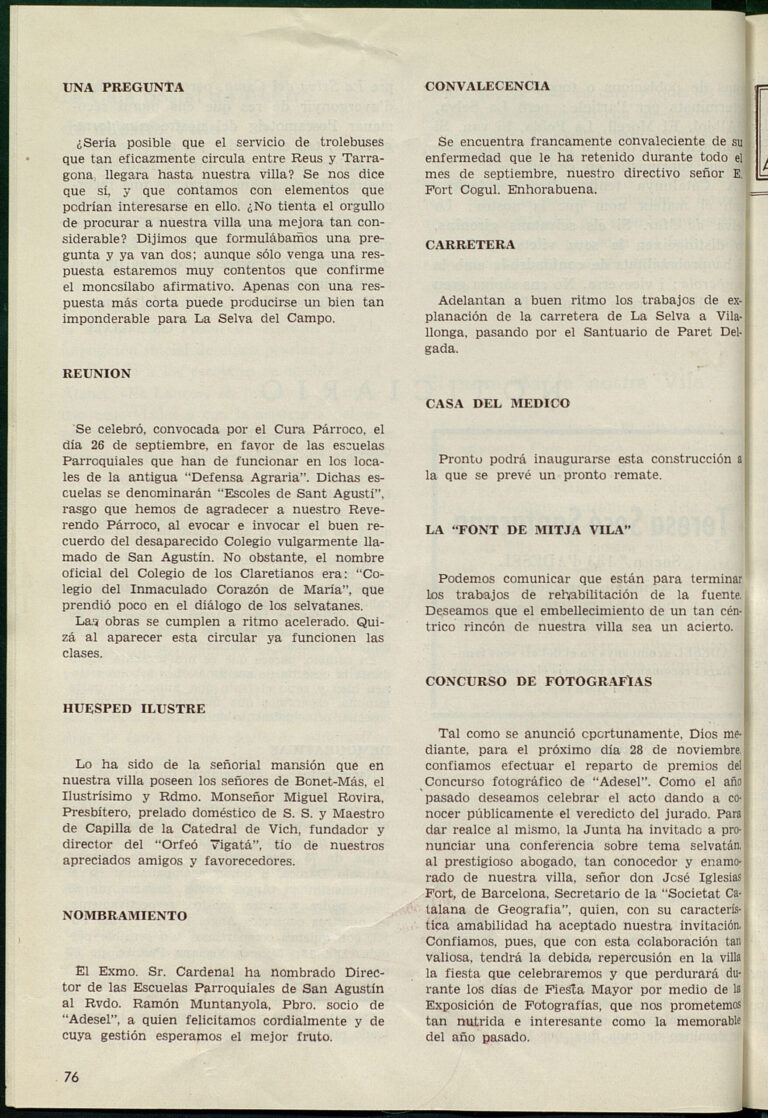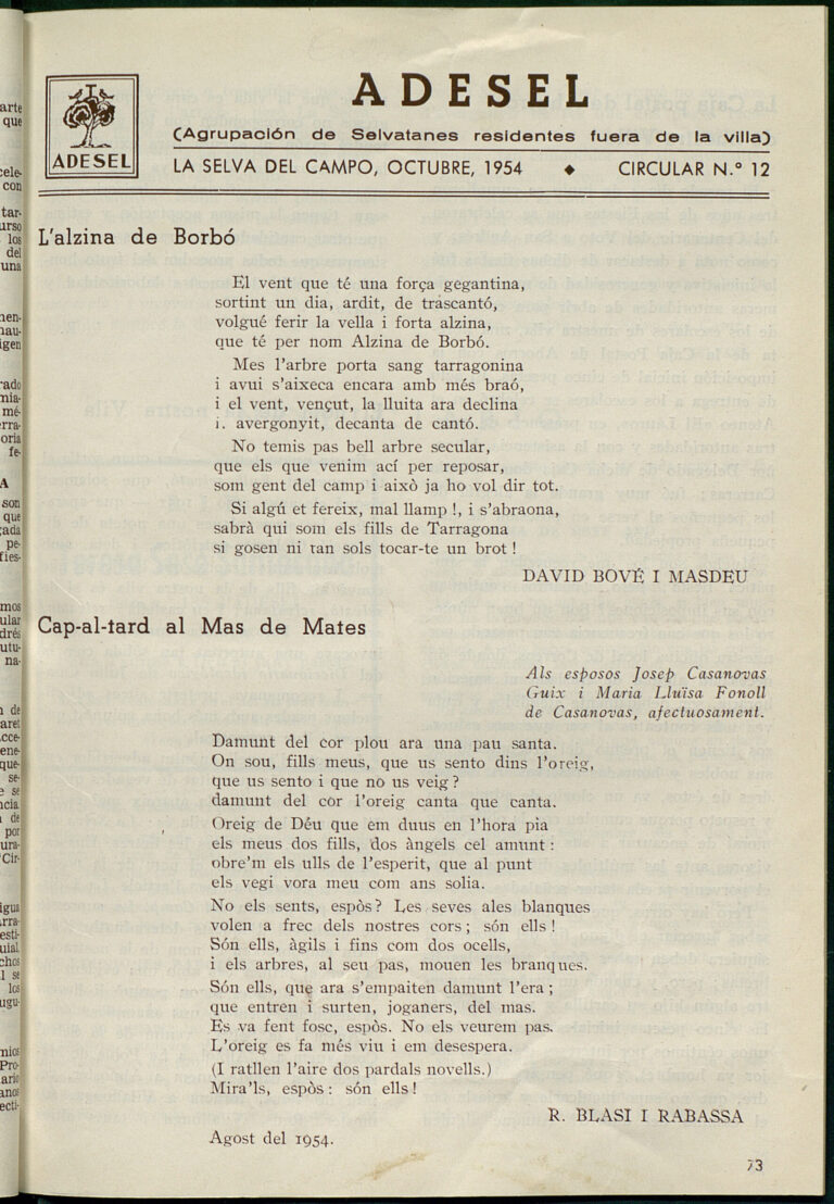 Dotzena circular publicada per l’Agrupació de Selvatans residents fora de vila. Fou publicada l’octubre de 1954.