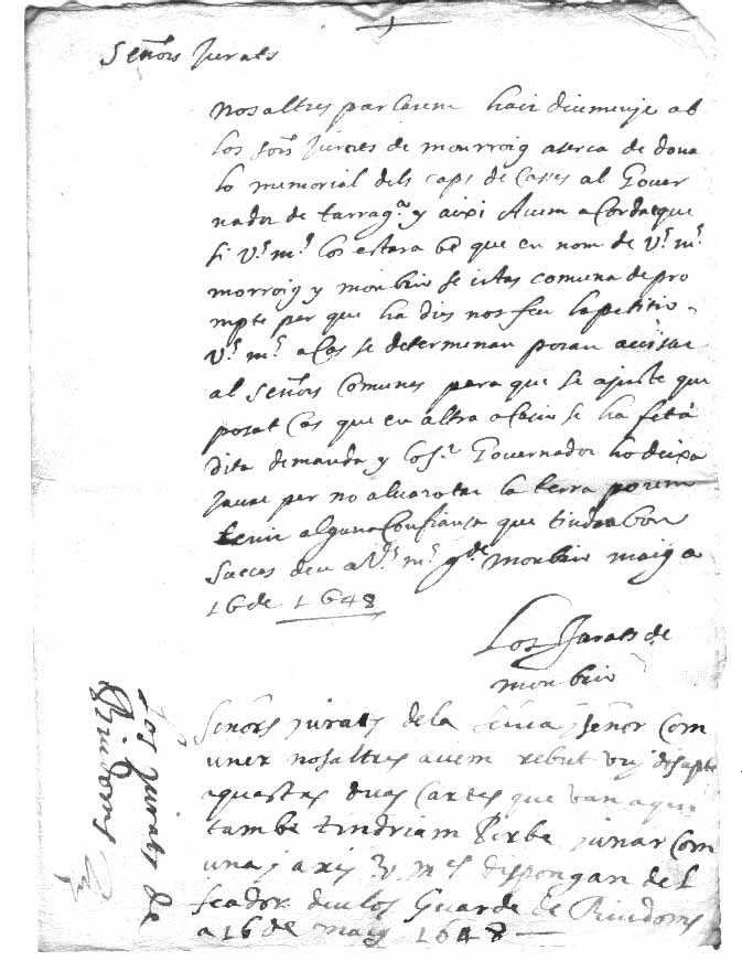 Carta tramesa pels jurats de Montbrió i dirigida als