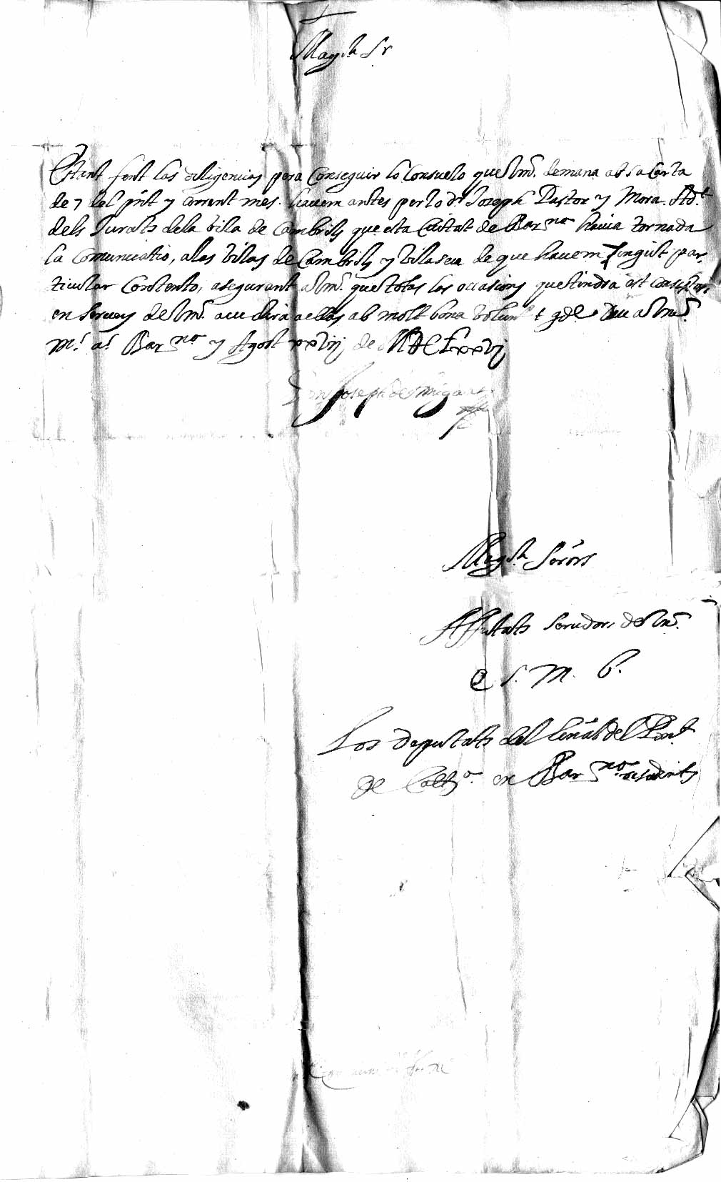 Carta adreçada, des de Barcelona, al Consell de la
