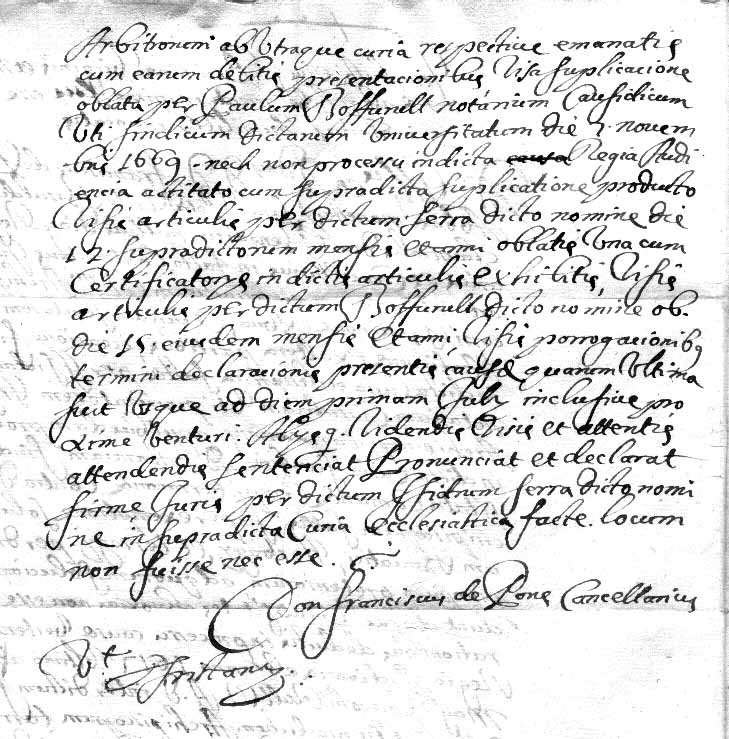 Provisió dictada per la Curia Eclesiàstica en la causa