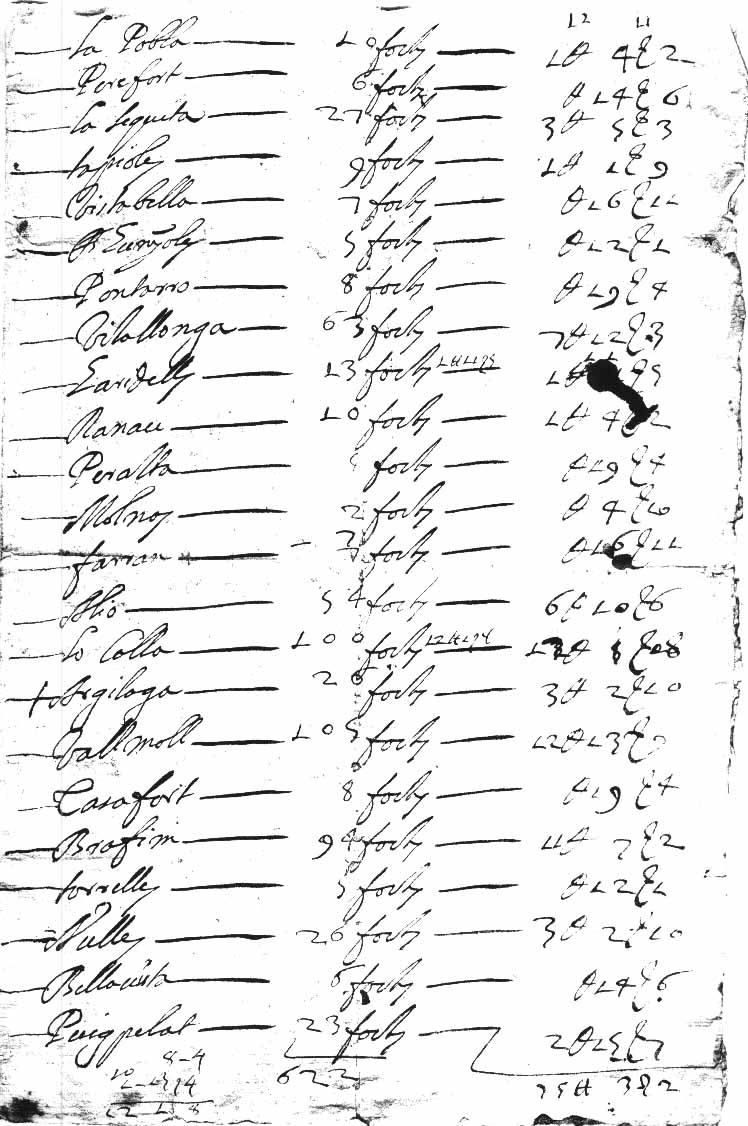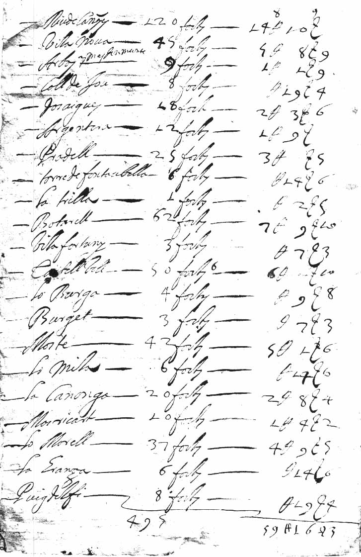 l’equivalent monetari. La Selva hi consta amb 304 focs,
