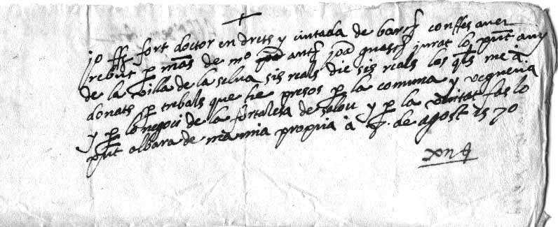 F. Fort, doctor en drets signa rebuda a favor d’un