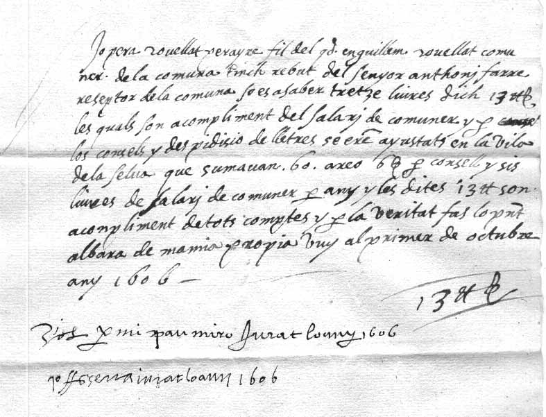 REBUDES SIGNADES A FAVOR DE LA COMUNA. PAGAMENT DE SALARIS.